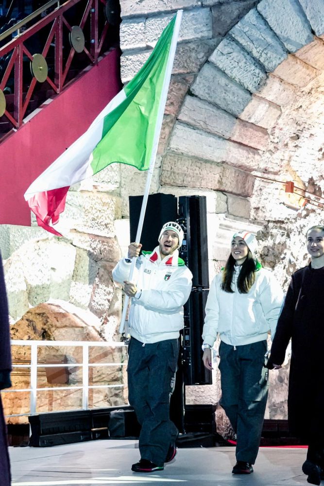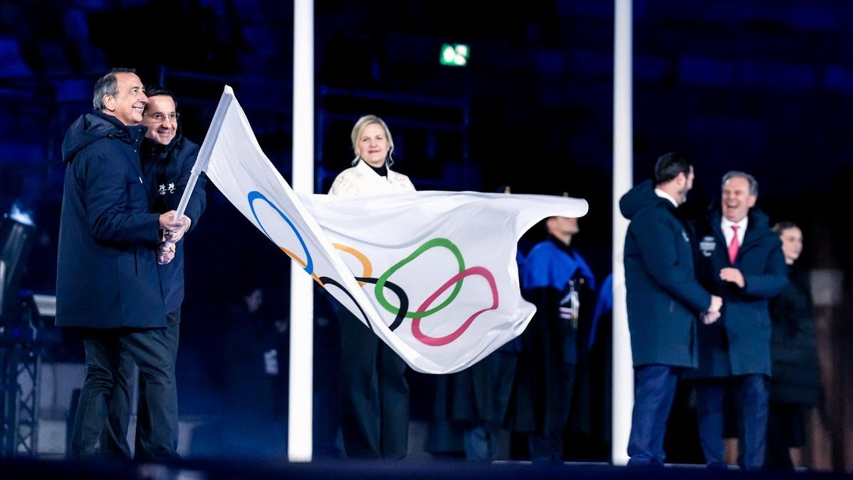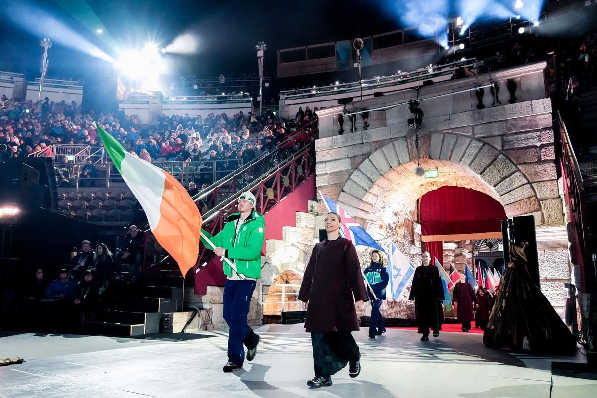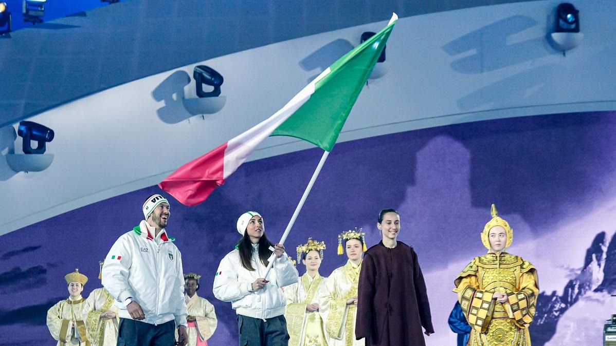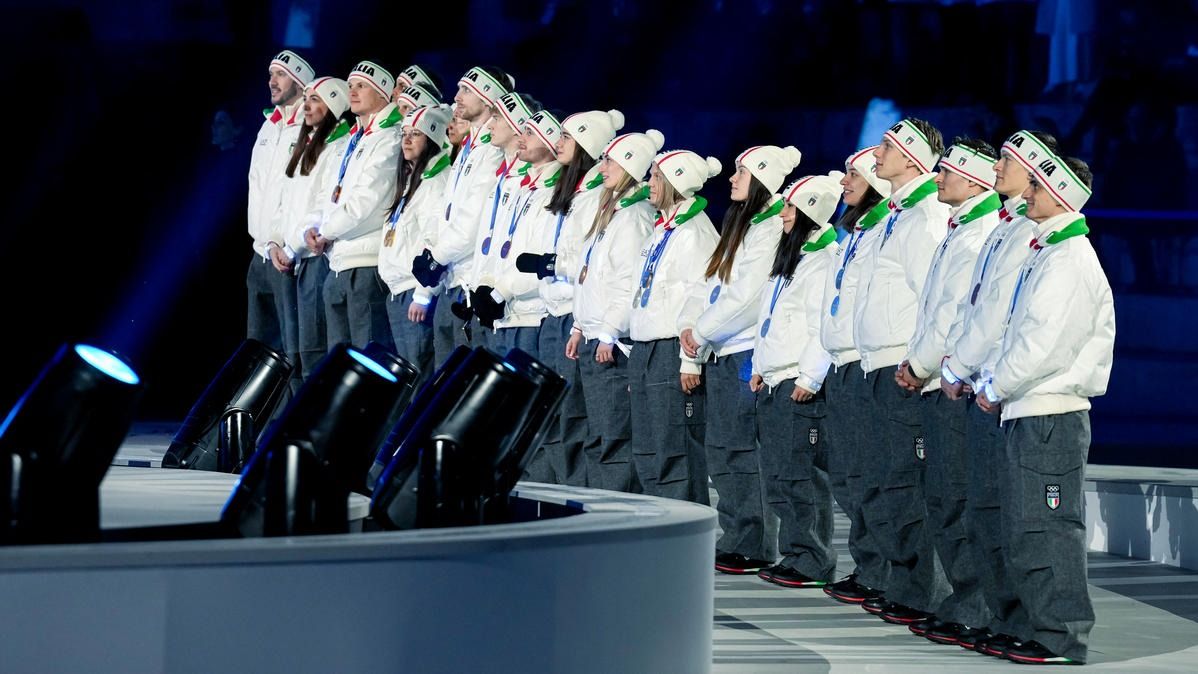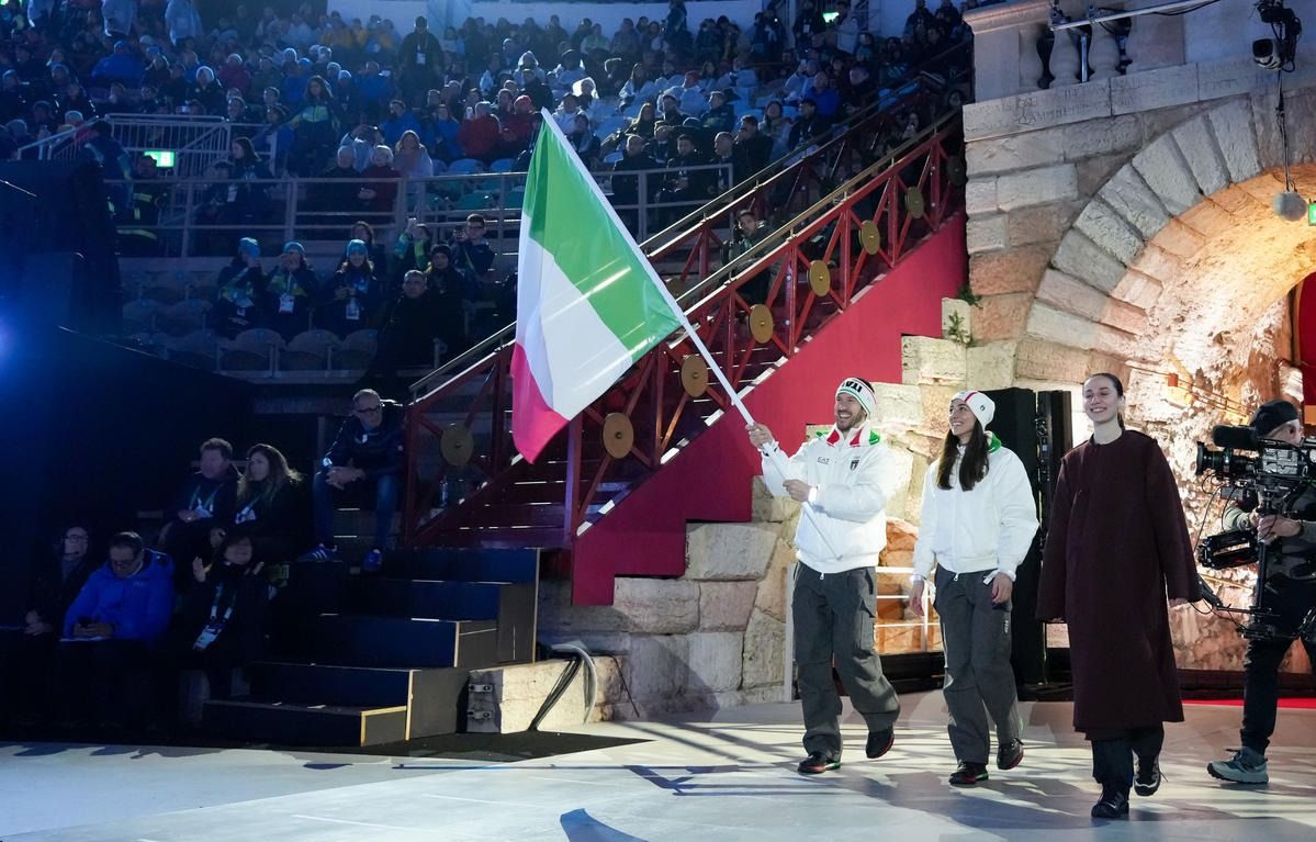 Closing ceremony: Vittozzi and Ghiotto carry the flag for a record-breaking team