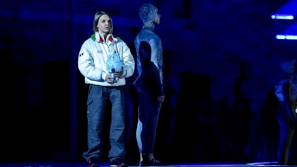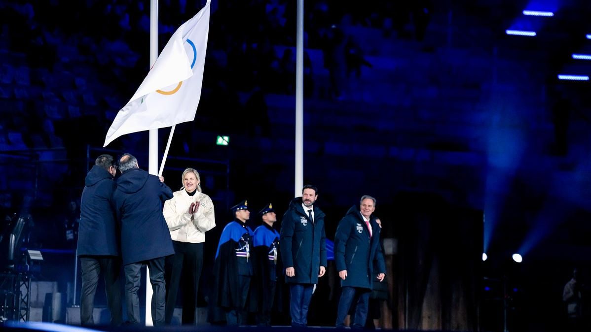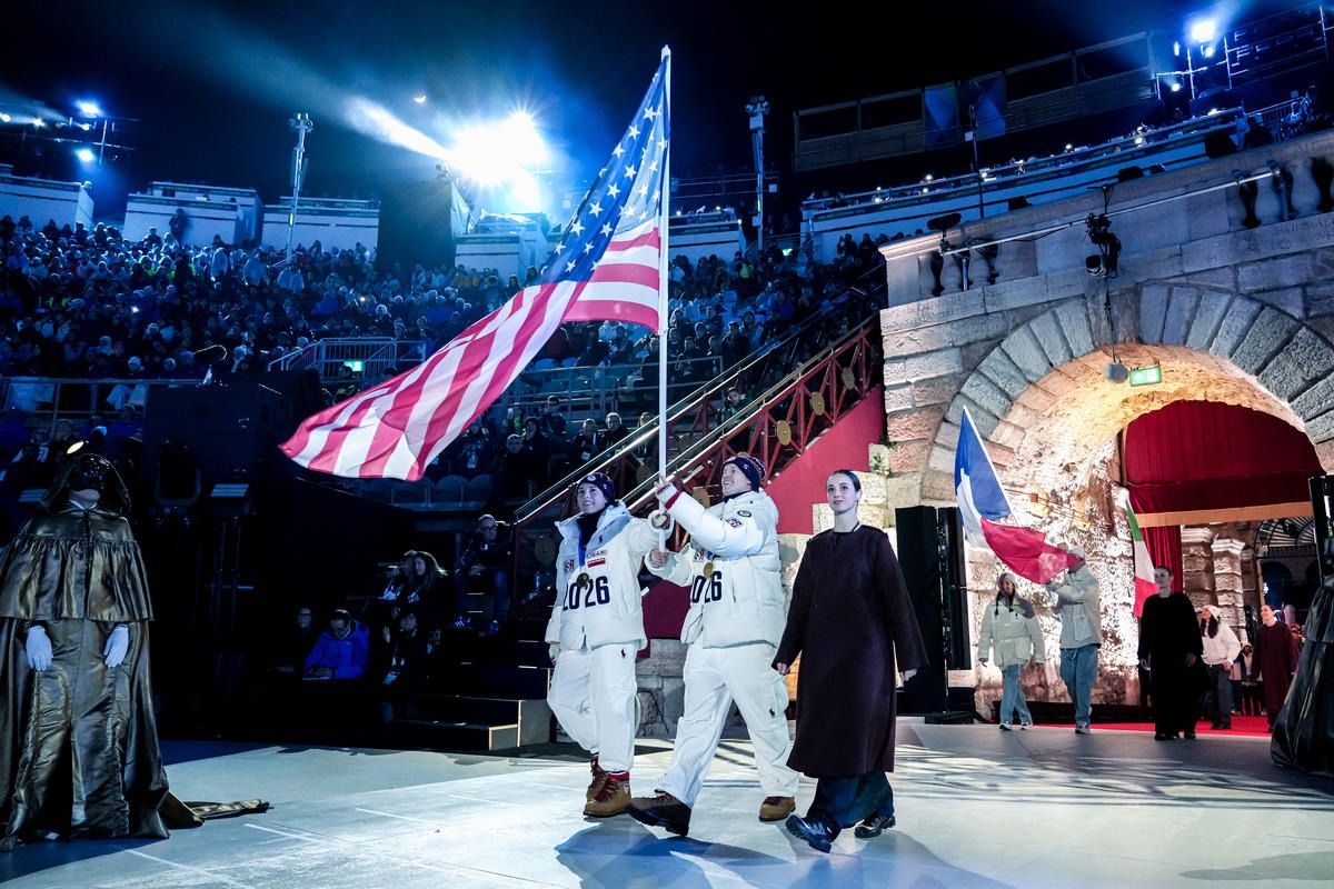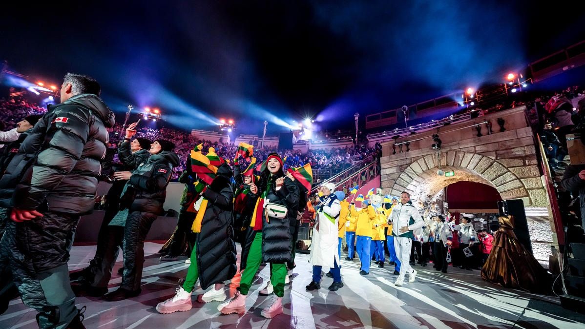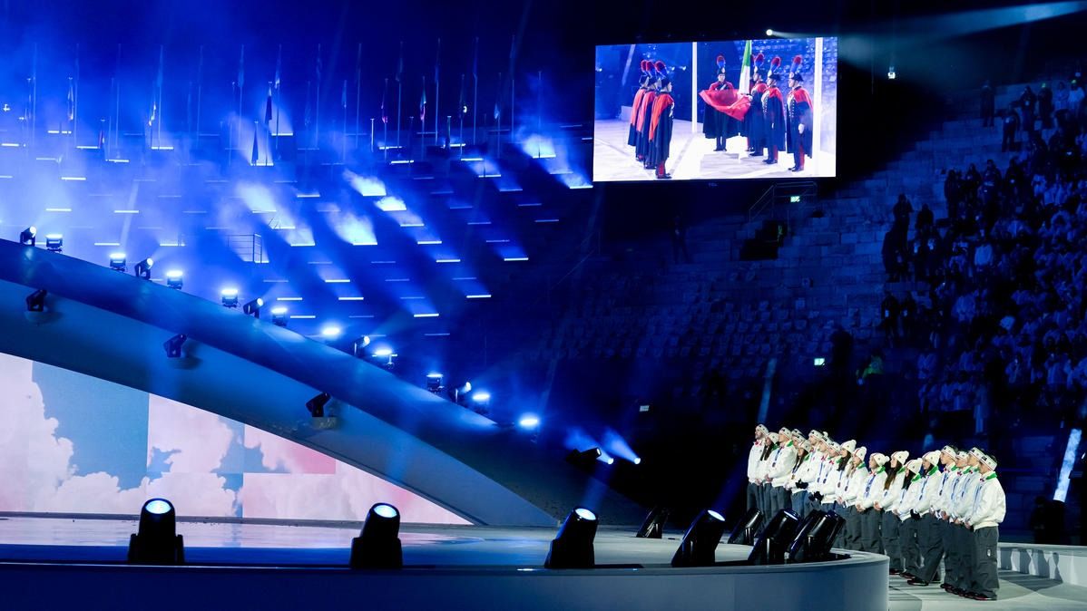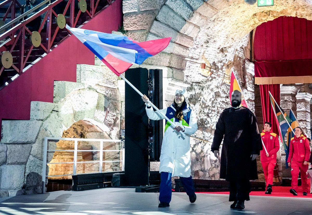 Closing ceremony: Vittozzi and Ghiotto carry the flag for a record-breaking team
