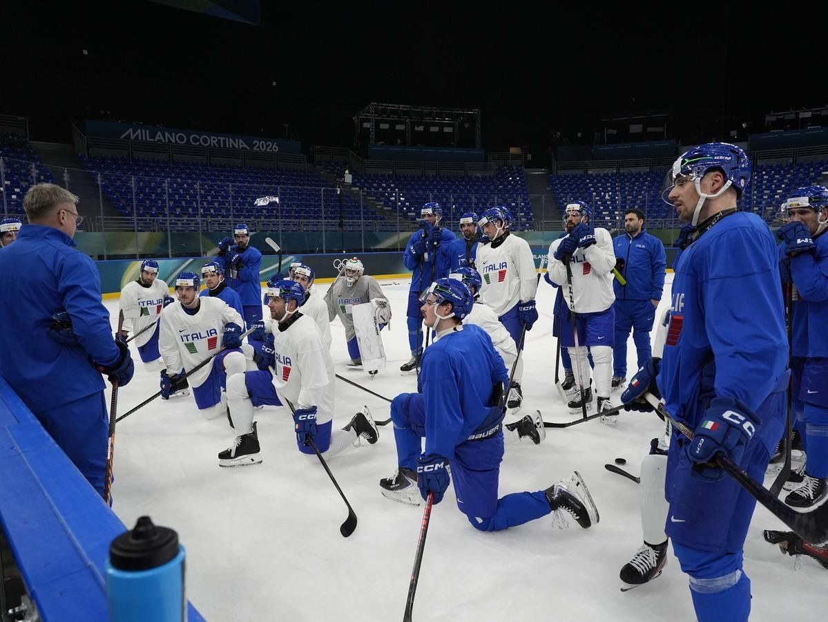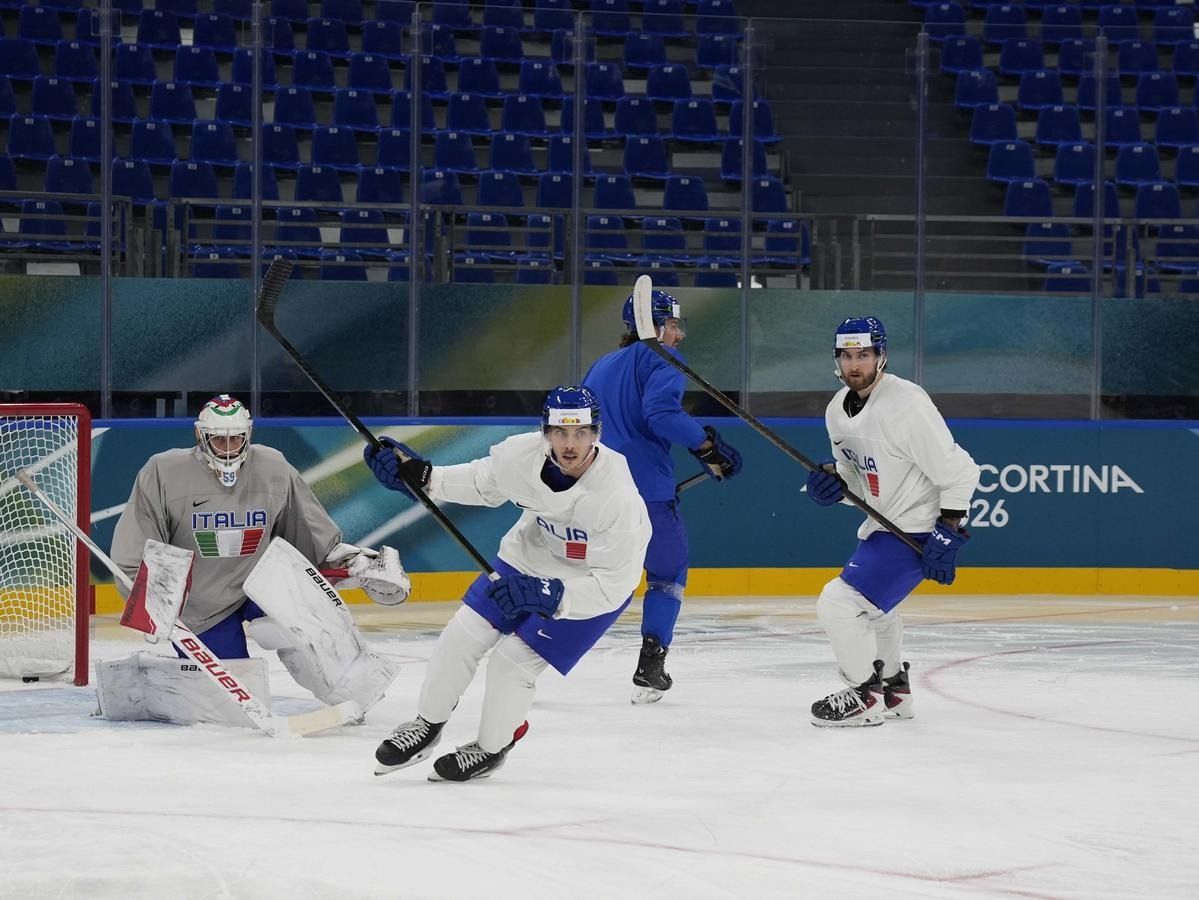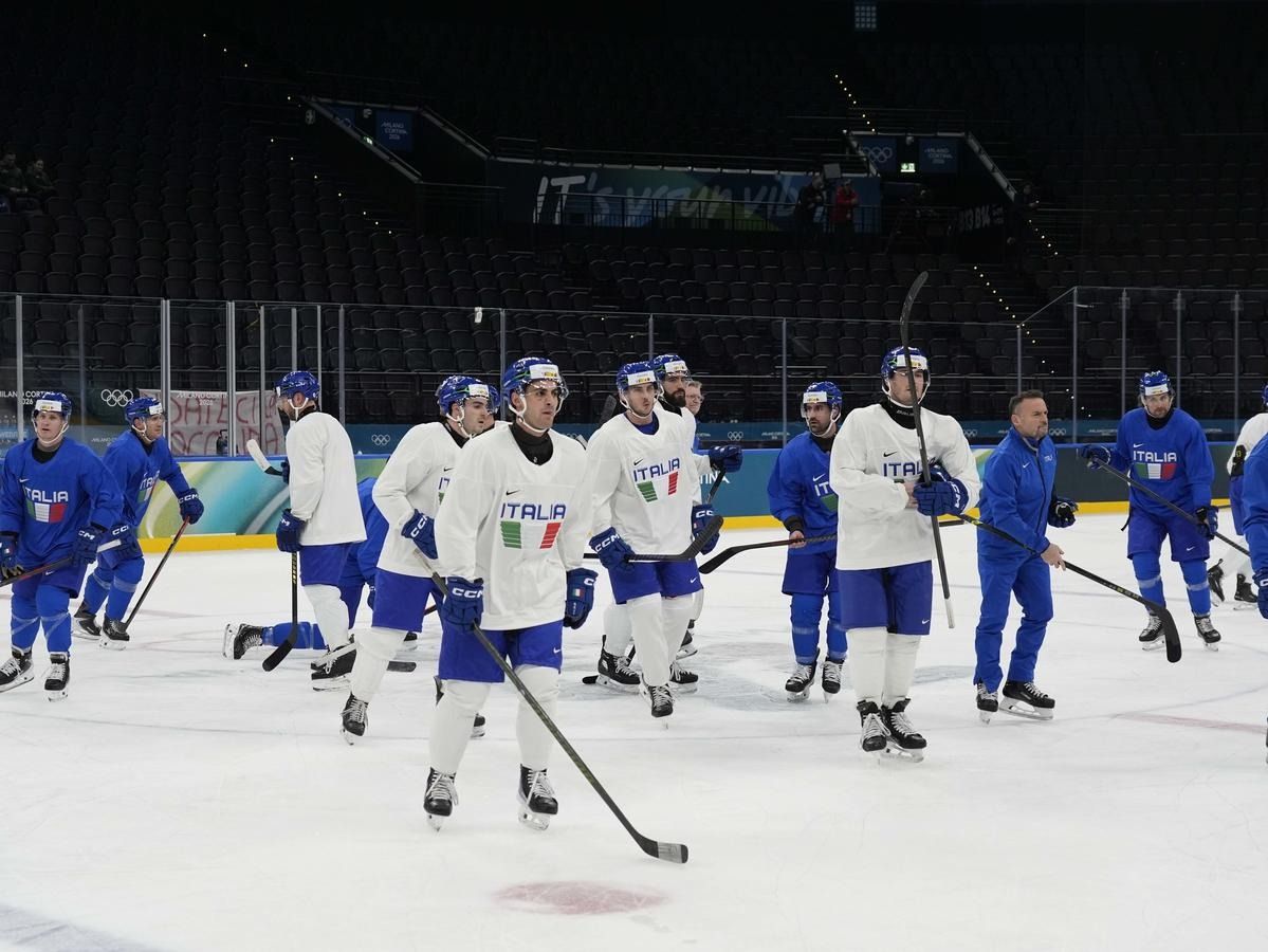 Milano: l'allenamento della Nazionale maschile di hockey su ghiaccio