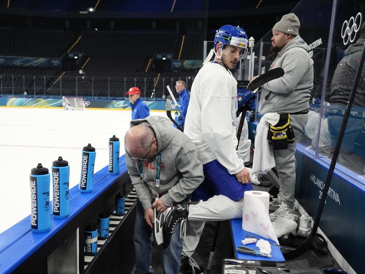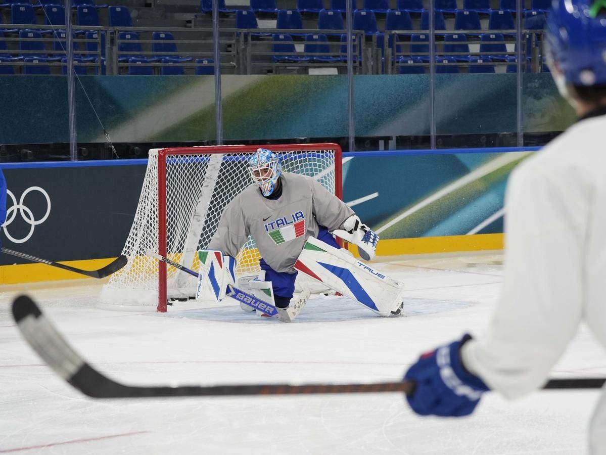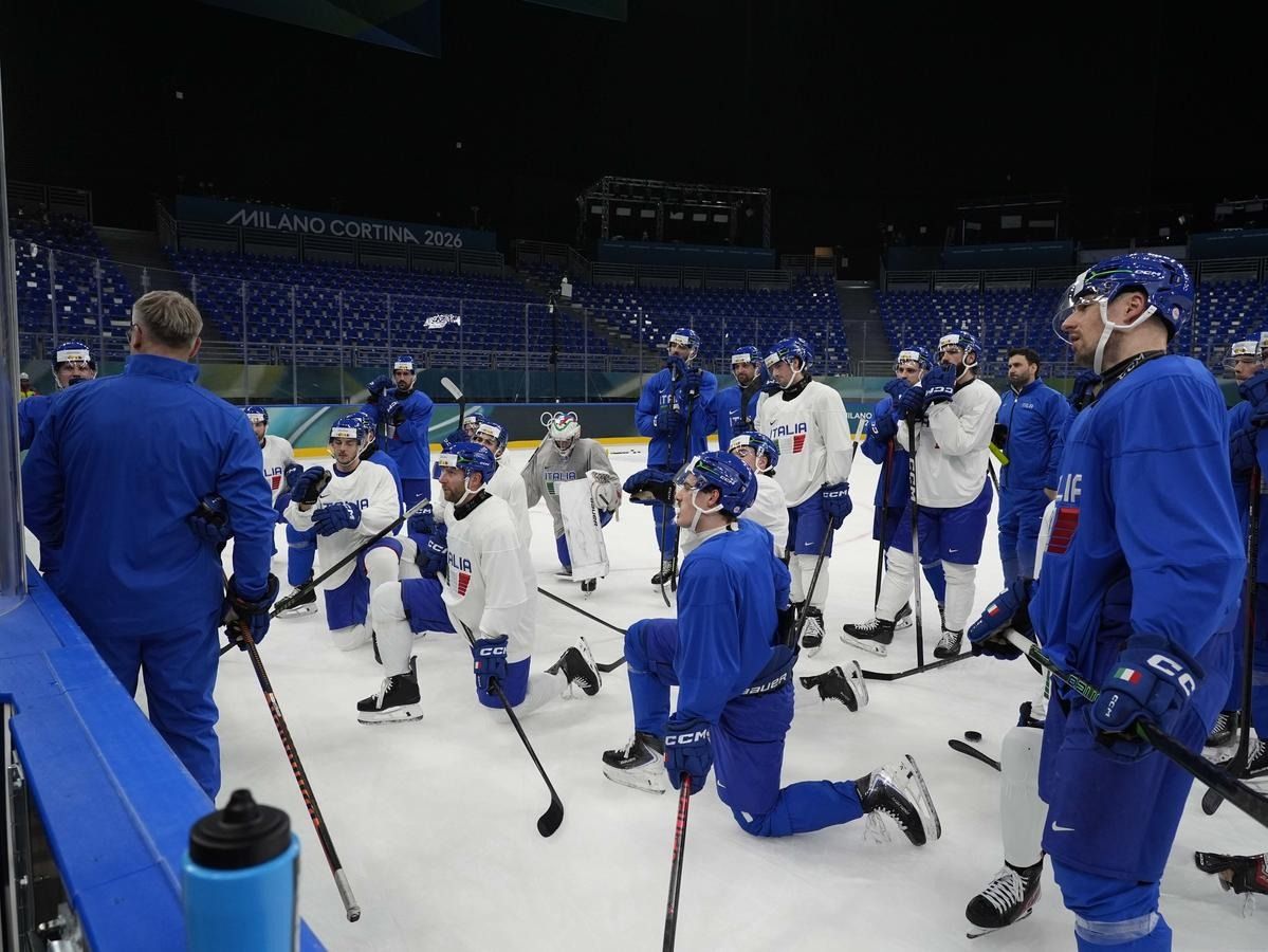 Milano: l'allenamento della Nazionale maschile di hockey su ghiaccio